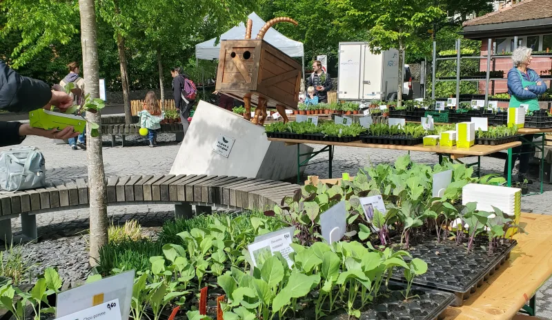 Un marché de plantons ProSpecieRara est l'occasion de découvrir des variétés adaptées au climat local et qui sortent de l'ordinaire : une betterave rouge Chioggia ? Un chou blanc de Wädenswil ? Pourquoi pas des courgettes Alberello di sarzana ?